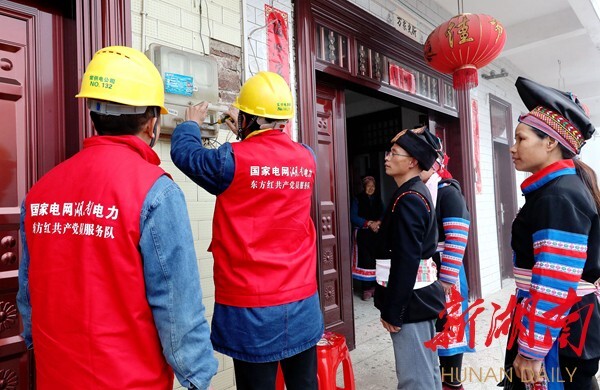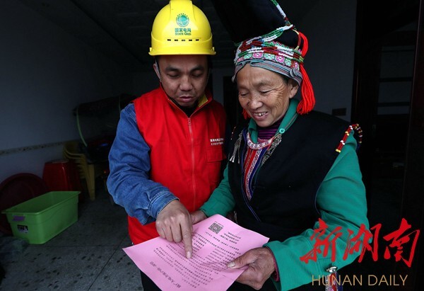 常宁市塔山瑶族乡9个中心村的2000多户瑶族乡民散居在海拔1200多米的塔山中。为了让瑶族老乡在家门口享受优质的服务,2018年11月,“国网湖南电力(洋泉红雁)共产党员服务队塔山服务站”在瑶乡成立,有4名队员常年驻守在塔山,当地村民结束了翻越50多公里山路下山办理用电业务的历史。