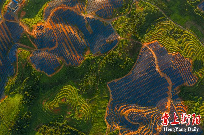 近日,常宁市西岭镇小松柏村光伏发电场风光如画,吸引众多摄影爱好者前来航拍。