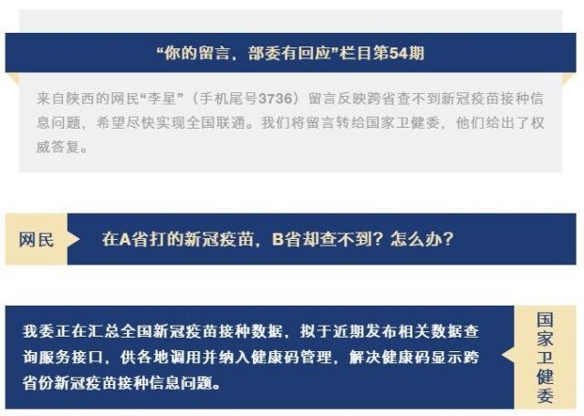 在A省打疫苗B省却查不到?国家卫健委:马上安排