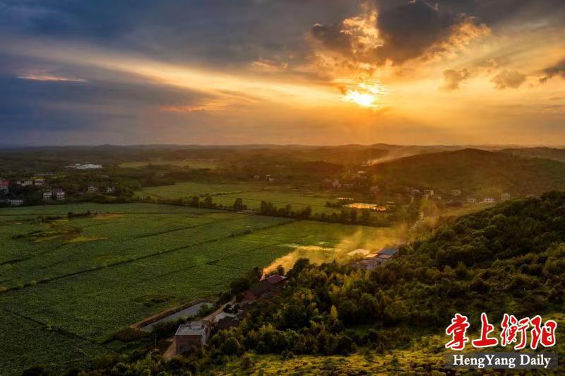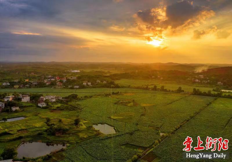 柏坊镇地处常宁城区宜阳镇和常宁最具活力的水口山之间,交通发达,农田密布,一直以来都是常宁的主要粮仓和蔬菜供应地之一。今年,该镇又大面积地引入湘莲种植。初秋,部分稻谷黄了,湘莲正盛。航拍下的柏坊大地,大面积的黄绿相间,场面壮观,夕阳下,诗意盎然。