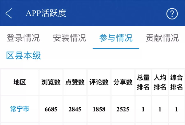 根据政协云APP活跃度数据显示,常宁市在全省区县本级“参与情况”的多项指标排名均为第一。