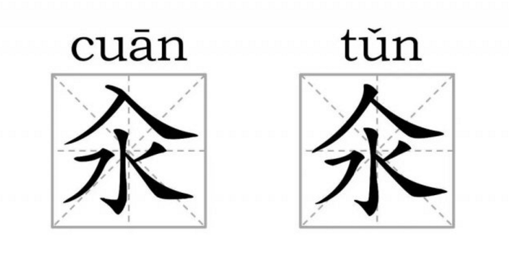 并且这还是两种烹调方法,左边的汆,上面是 “入”,意思是把食物放在开水里稍微煮一下;右边的氽,上面是 “人”,意思是油炸。